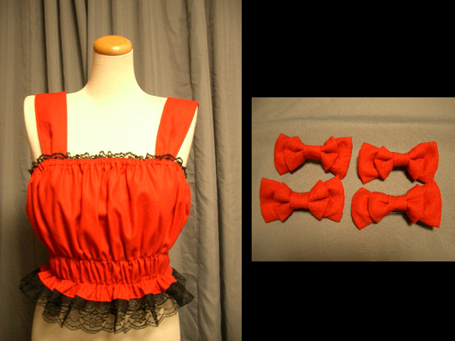 お出掛けから帰ってからはまた製作。一点物の可憐乙女ちゃんですが、赤い布は目に堪えますわね
